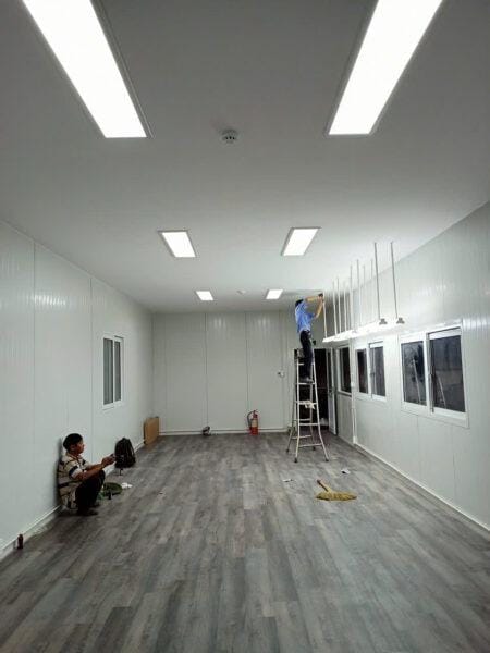 - Thiết kế và thi công văn phòng panel: Xây dựng văn phòng sử dụng panel cách nhiệt, chống ồn, đảm bảo khả năng cách âm và giữ nhiệt cho không gian làm việc. Thiết kế linh hoạt, dễ dàng thay đổi cấu trúc khi cần thiết, tạo không gian làm việc thoáng đãng và hiệu quả.